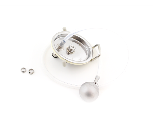 Einzelkomponenten >>> Deckel, Dichtung, Schwimmer, Silikonschlauch und 2 Schlauchklemmen - Material: Edelstahl, Silikon
